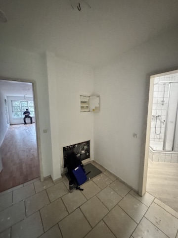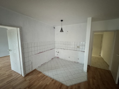 In einer 2-Raumwohnung war der Boden deutlich abgewohnt und wurde entfernt. Parallel dazu sollten in der offenen Küche, sowie im Eingangsbereich die Fliesen entfernt werden. In allen Räumen wurde Trittschall und eine Sorte Laminat neu verlegt. Umlaufend sind Sockelleisten in Laminatoptik zum Einsatz gekommen. Die Türblätter wurden angeglichen und auch teilweise erneuert.