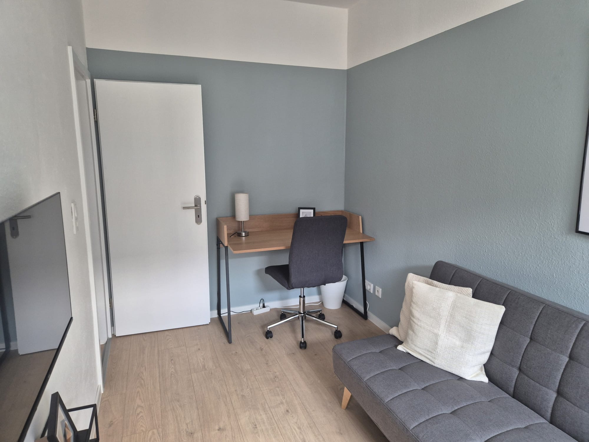 Das verschlissene Laminat musste zurückgebaut werden. Ein freundliches Neues haben wir verlegt. Parallel dazu sind die Wände gemacht wurden. Auch die Montage der vom Kunden gestellten Möbelstücke haben wir zur vollsten Zufriedenheit erledigt.
