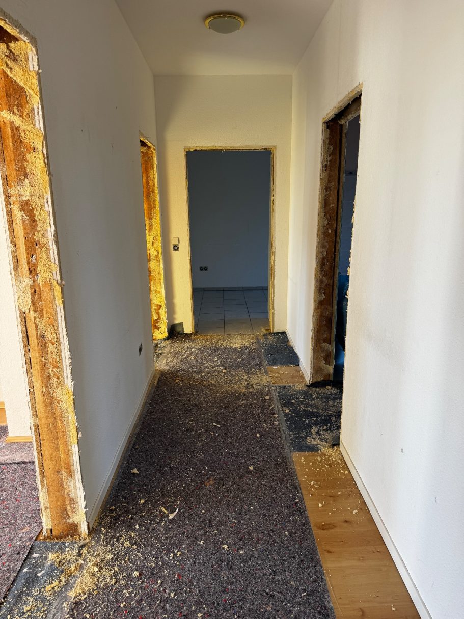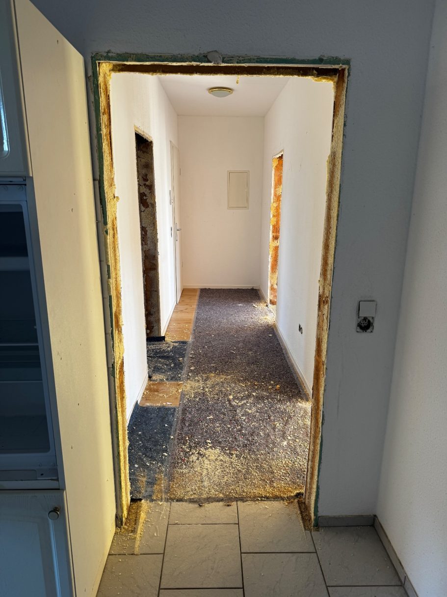 Die Wandflächen der Wohnung wurden zum Mieterwechsel neu geweißt (NAN). Die Türblätter und Zargen wurden erneuert. Die Küche erhielt neue Fronten und eine neue Arbeitsplatte.