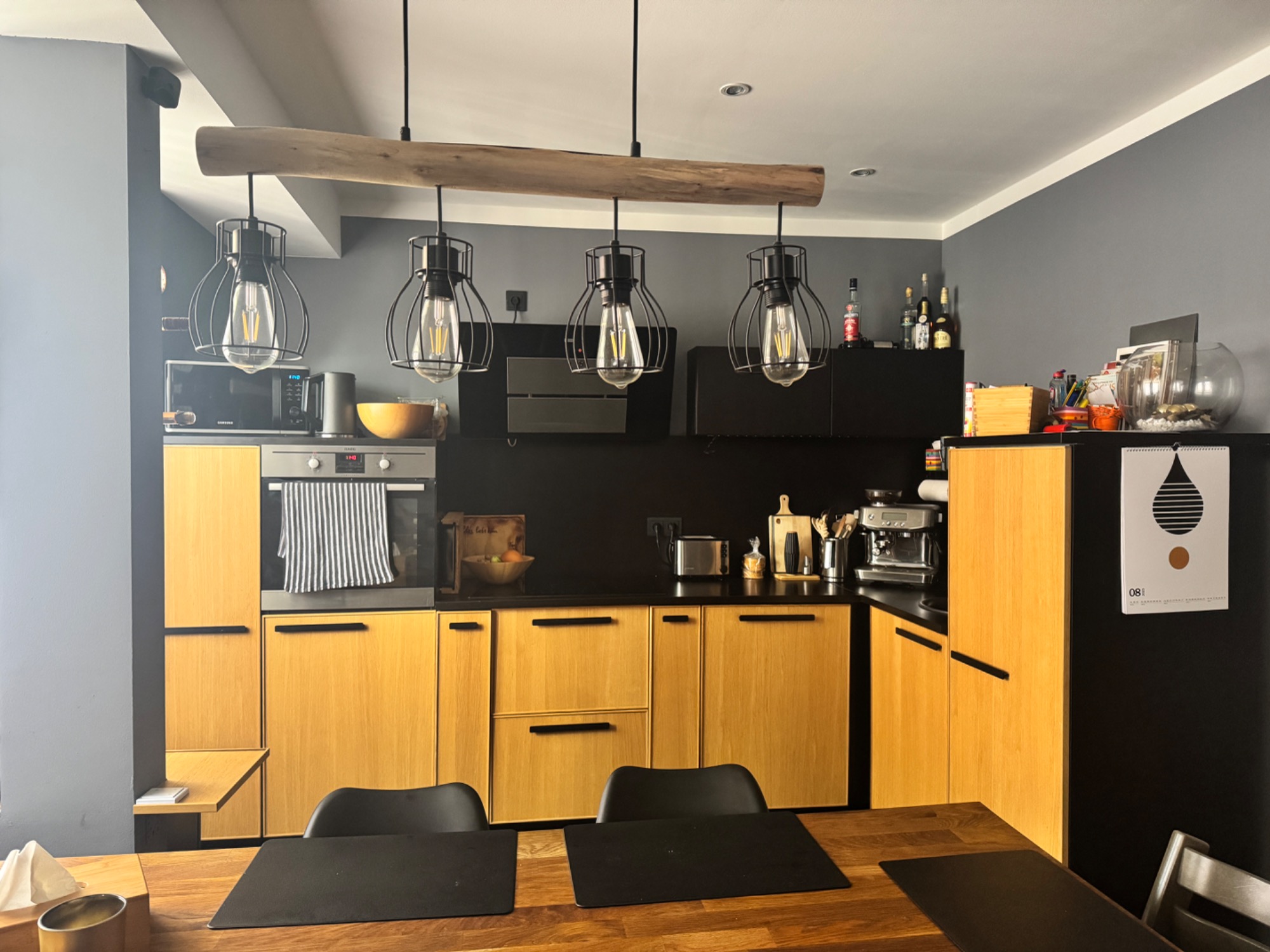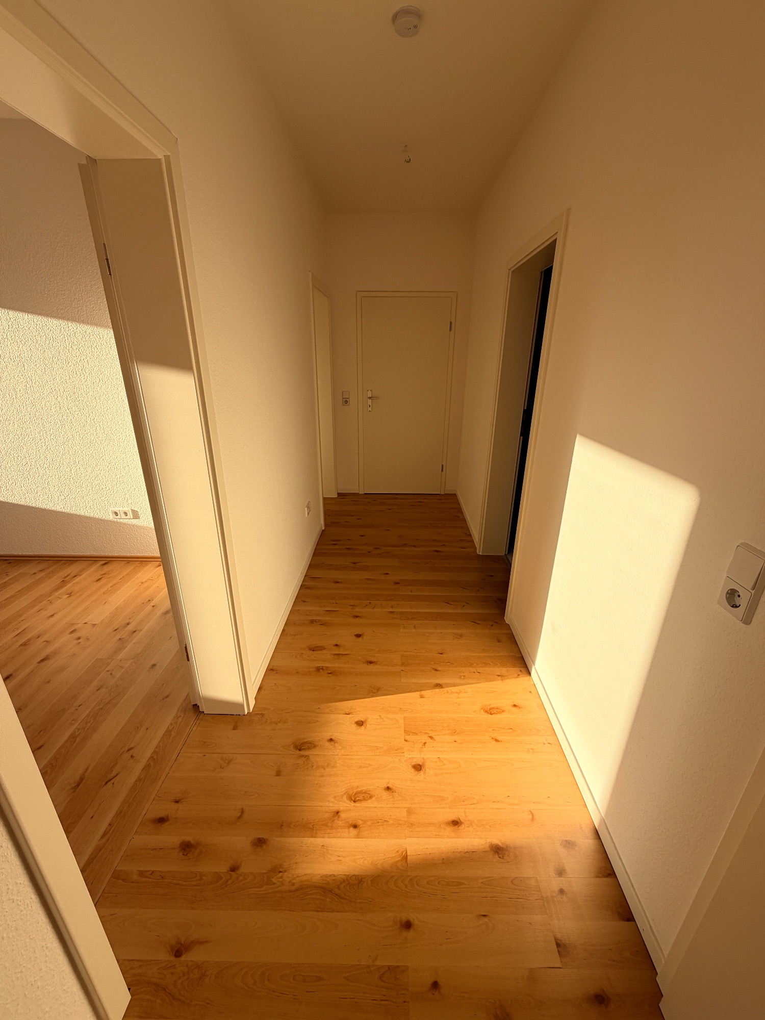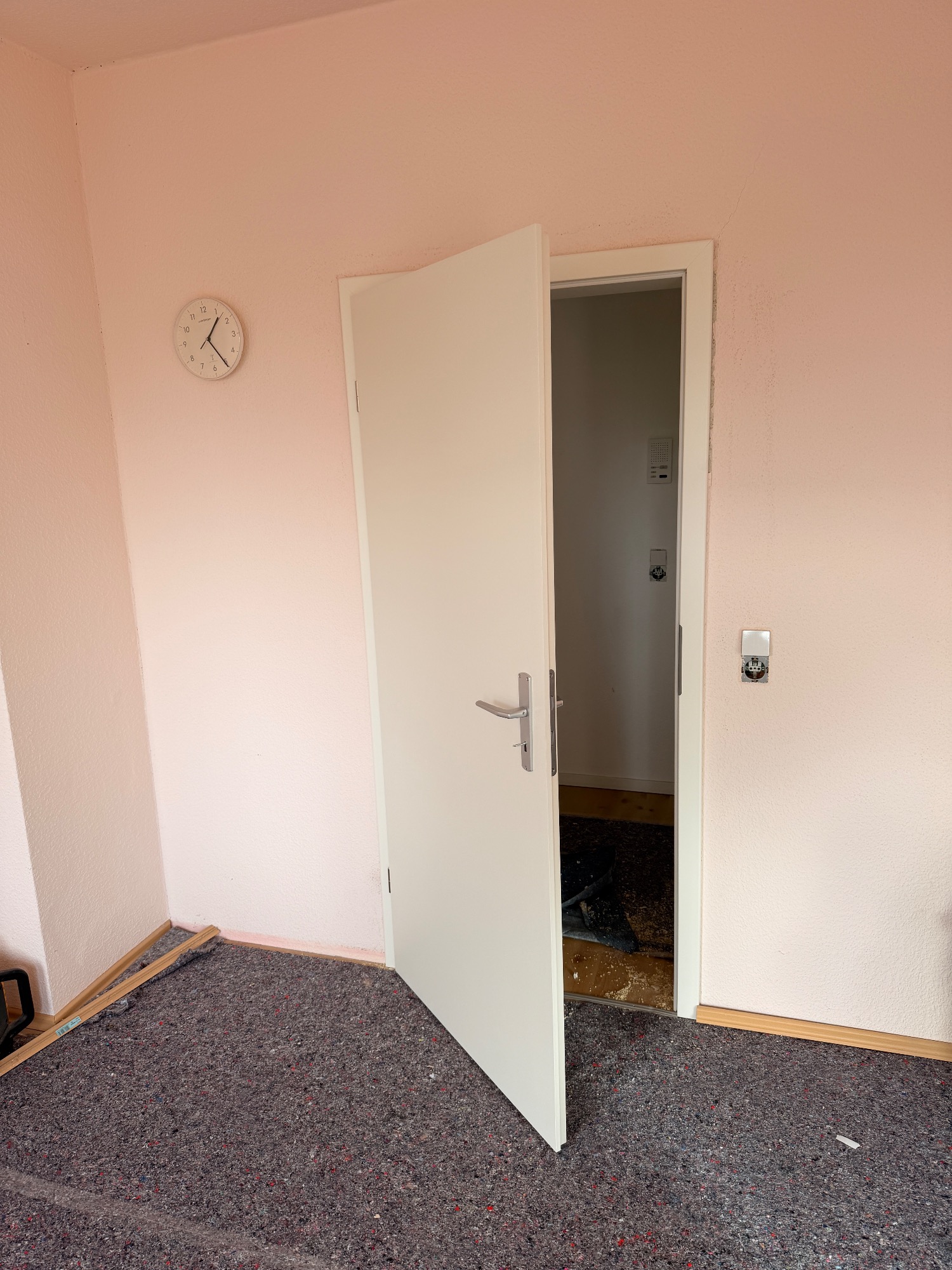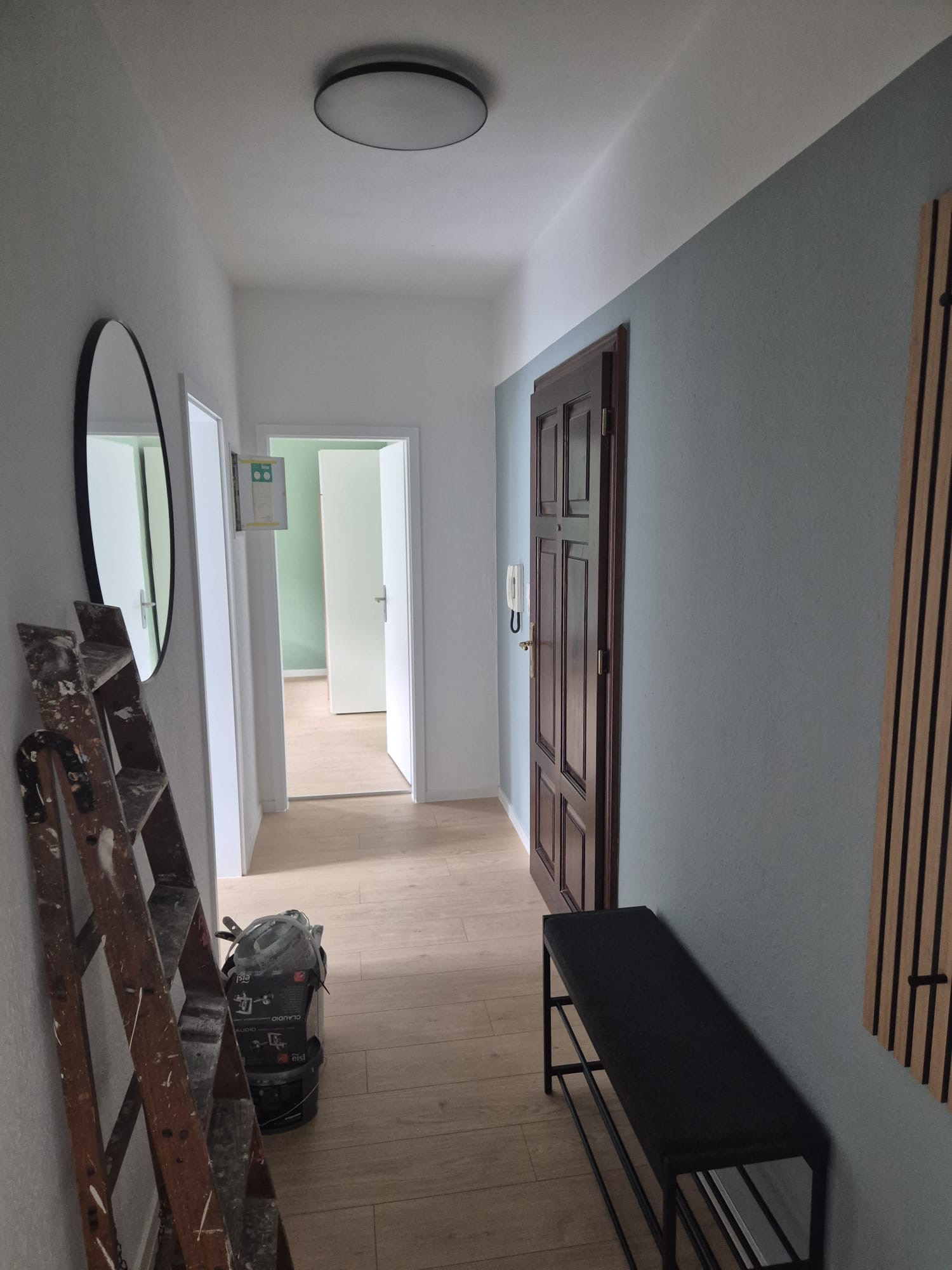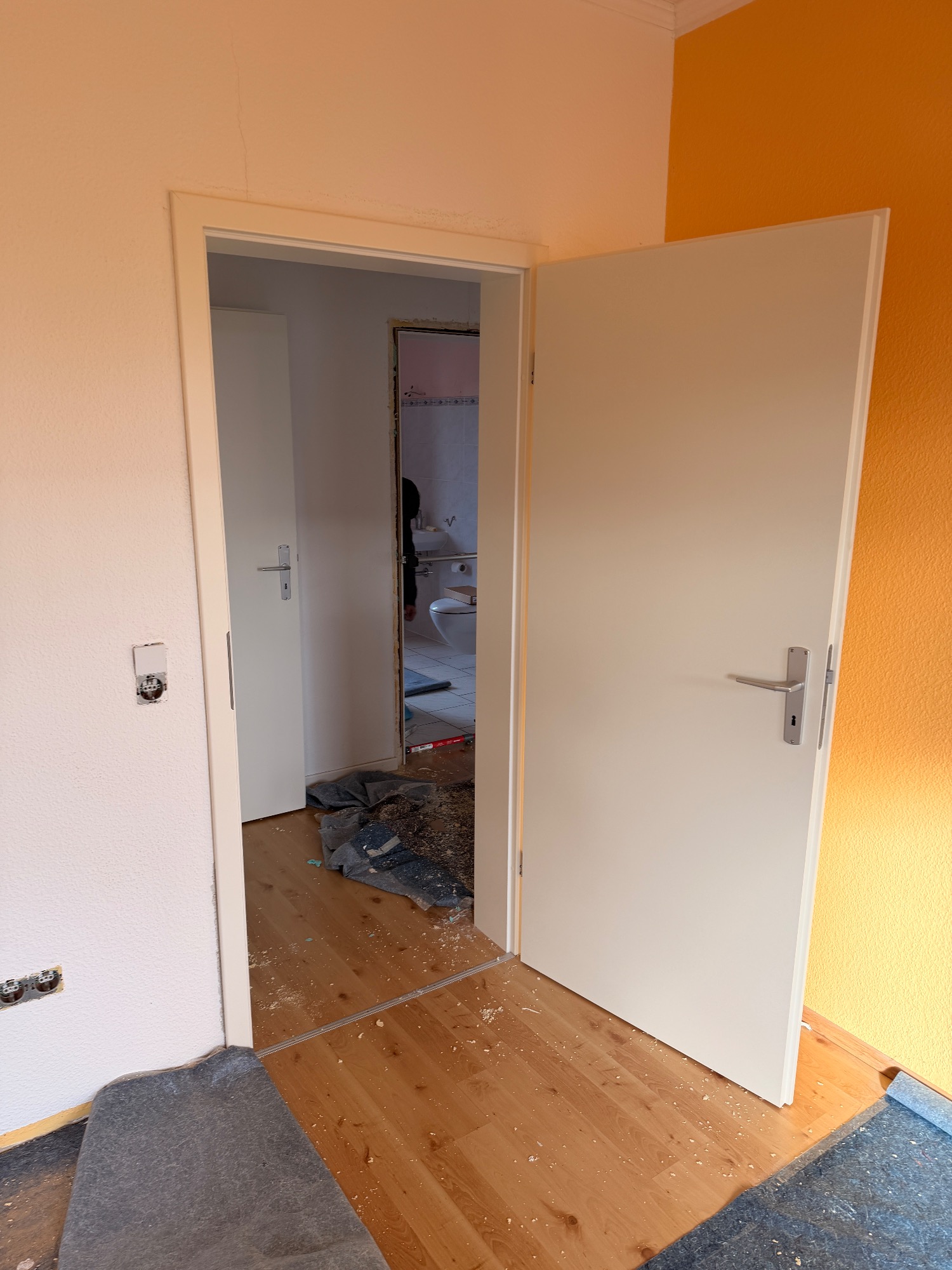Die Wandflächen der Wohnung wurden zum Mieterwechsel neu geweißt (NAN). Die Türblätter und Zargen wurden erneuert. Die Küche erhielt neue Fronten und eine neue Arbeitsplatte.