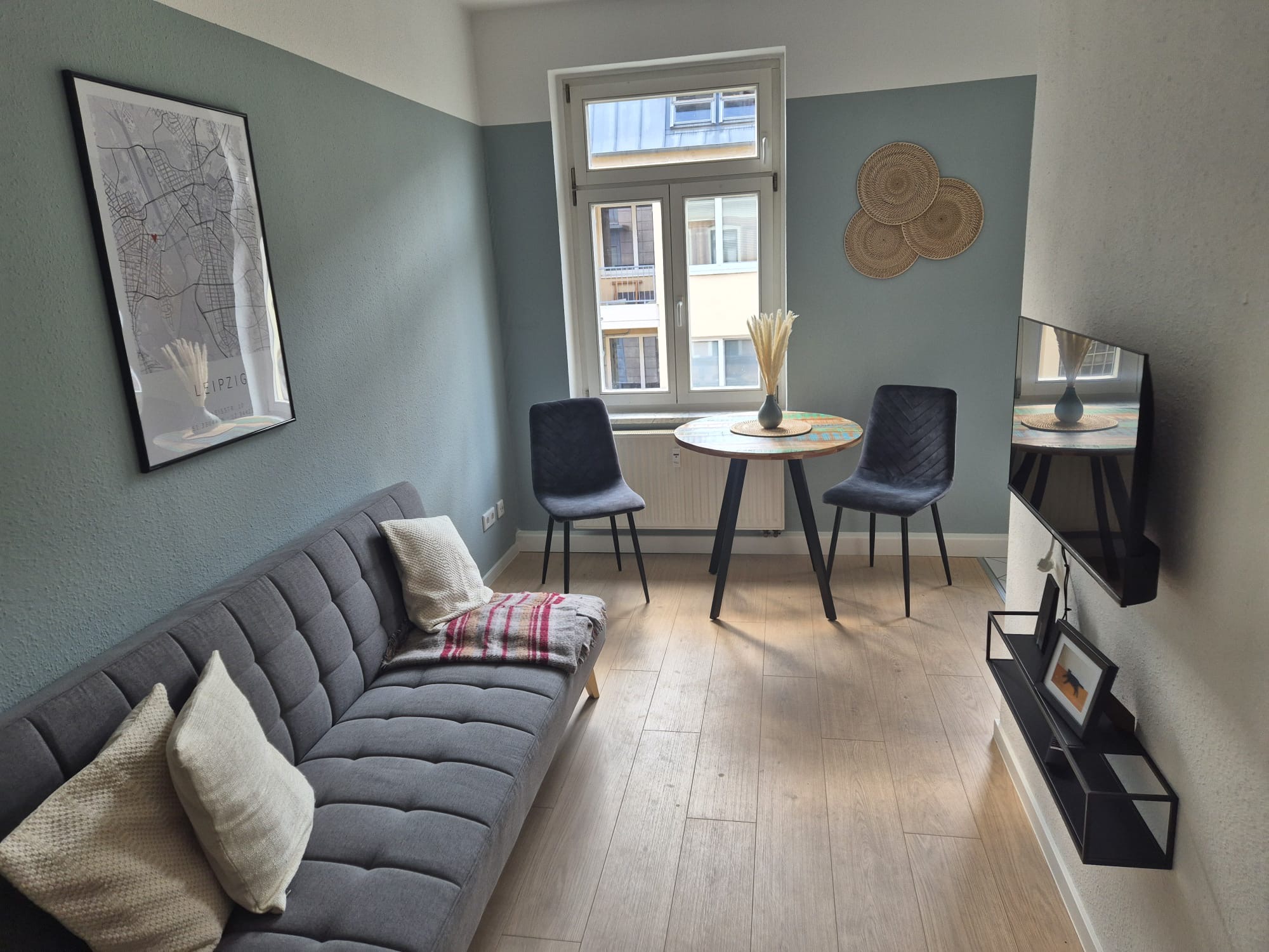 Die Wandflächen im Schlafzimmer, Wohnzimmer und Küche wurden farblich abgesetzt (NAN). Der Eingangsbereich der Wohnung erfolgte die Montage einer Garderobe mit einem akustisch wirksamen Wandbelag.